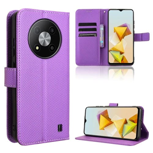 Funda de Cuero para ZTE Blade A73 5G con Textura de Diamante (Púrpura)