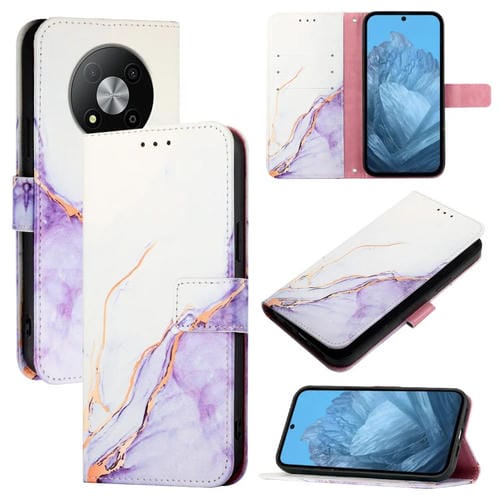 Funda de Cuero con Tapa para ZTE Blade A73 5G Pt003 con Patrón Mármol (Blanco y Morado)