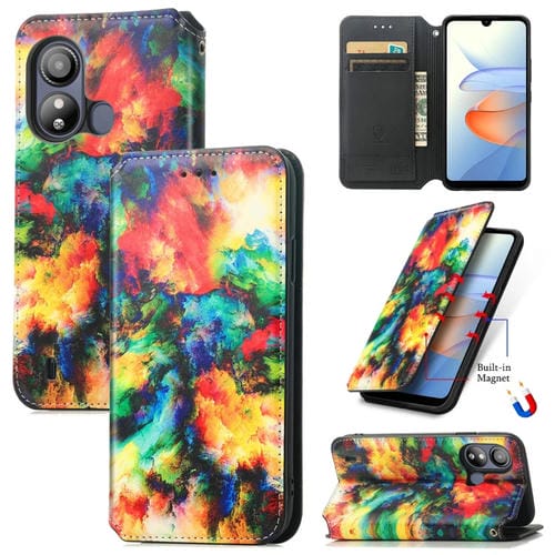 Funda de Cuero Magnética Caseneo para ZTE Blade L220 (Nube Colorida)