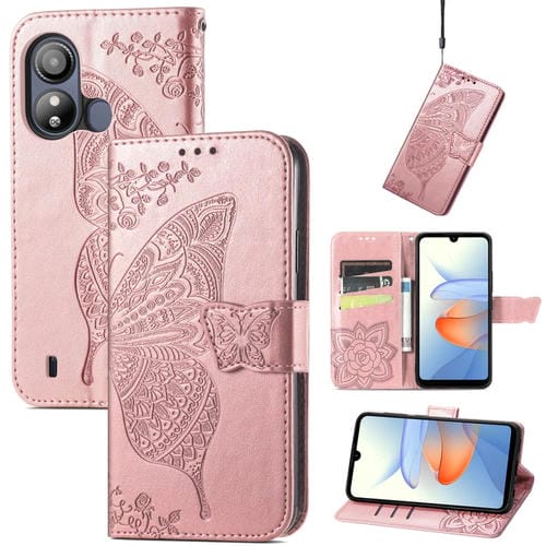 Funda para ZTE Blade L220 Cuero con Relieve Flor de Amor y Mariposa (Oro Rosa)