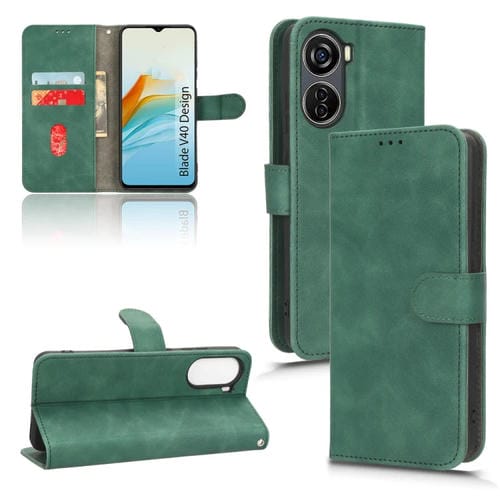 Funda Flip de Cuero Magnética para ZTE Blade V40 Design Skin Feel (Verde)