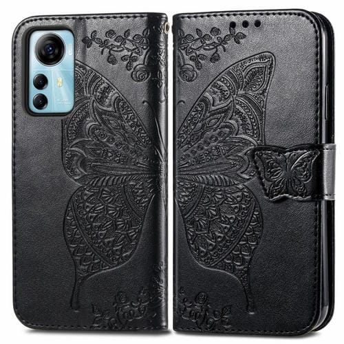 Funda de Cuero para ZTE Blade V41 Smart Butterfly Love Flower en Relieve (Negro)