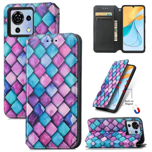 Funda de Cuero Magnética Caseneo para ZTE Blade V50 Vita con Diseño de Escamas (Morado)