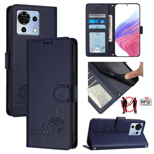 Funda para ZTE Blade V50 Vita CAT Rat Cuero Rfid con Patrón en Relieve y Cordón (Azul)