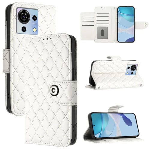 Pour ZTE Blade V50 Vita Étui de téléphone à rabat en cuir à texture rhombique avec lanière (blanc)