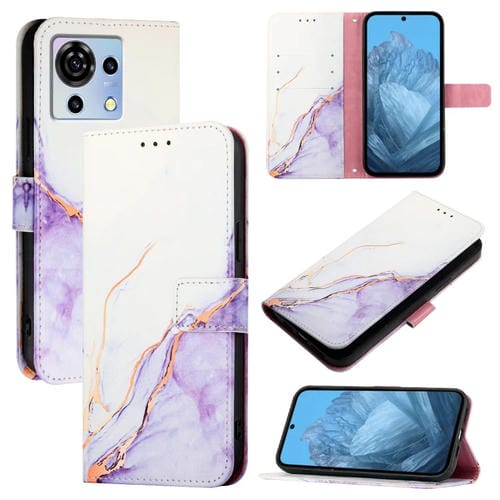 Funda de Cuero para ZTE Blade V50 Vita Pt003 con Tapa y Patrón de Mármol (Blanco y Morado)
