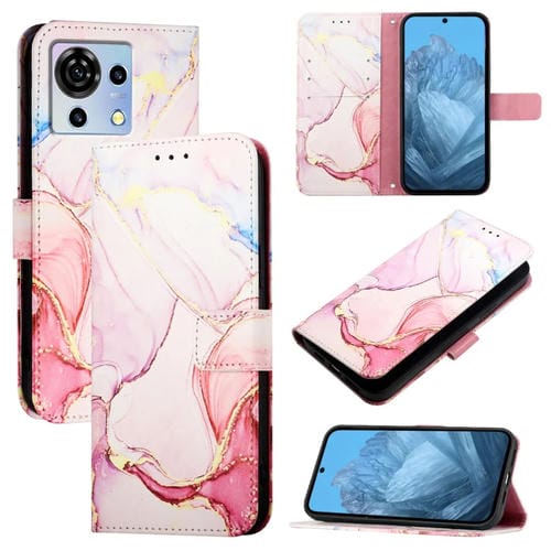Funda de Cuero para ZTE Blade V50 Vita Pt003 con Tapa y Patrón de Mármol (Oro Rosa)