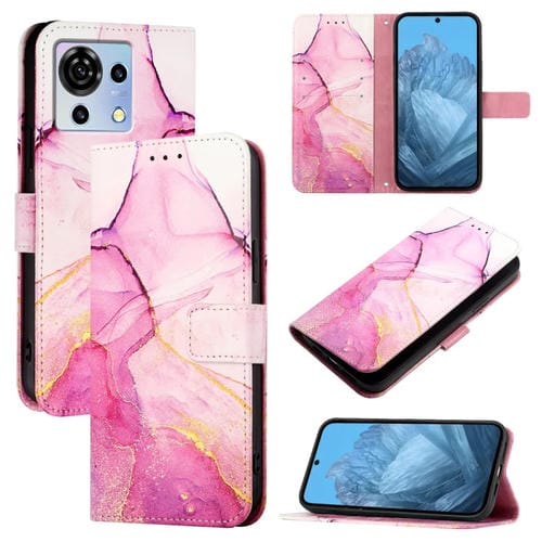 Funda de Cuero con Tapa para ZTE Blade V50 Vita Pt003 con Patrón de Mármol (Rosa, Morado y Dorado)