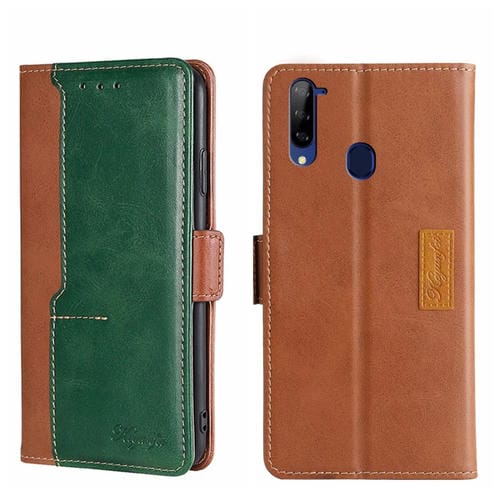 Funda para ZTE Libero 5G de Cuero con Hebilla Lateral y Contraste (Marrón Claro + Verde)