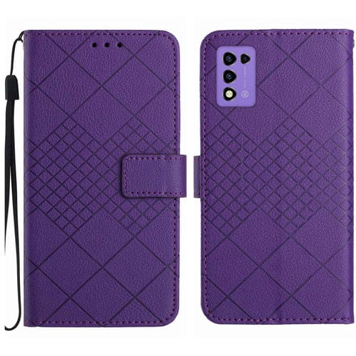 Funda de Cuero para ZTE Libero 5G Iii con Textura de Rejilla Rómbica (Púrpura)