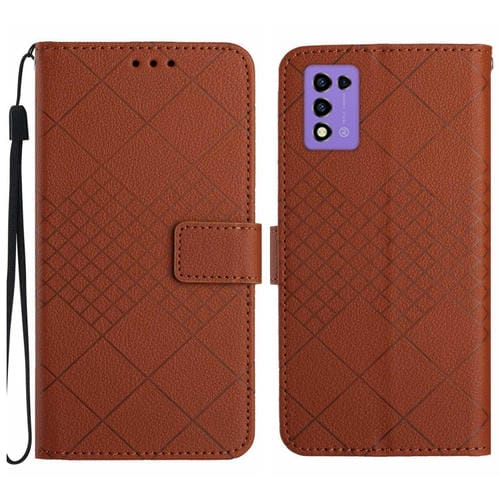 Funda para ZTE Libero 5G III de Cuero con Textura de Rejilla Rómbica (Marrón)