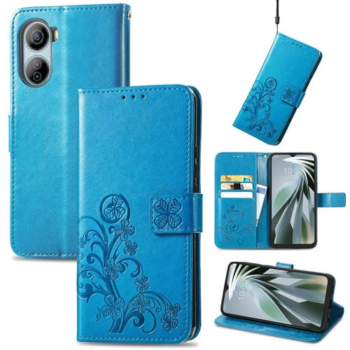 Estuche para ZTE Libero 5G Iv de Cuero en Relieve con Cierre de Cuatro Hojas (Azul)