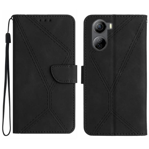 Funda de Cuero para ZTE Libero 5G Iv con Costuras En Relieve (Negro)