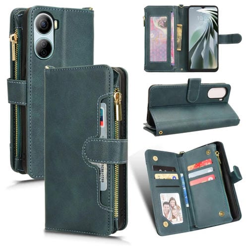 Funda de Cuero ZTE Libero 5G Ⅳ con Cremallera y Textura Litchi (Verde)