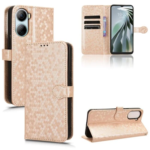 Funda de Cuero para ZTE Libero 5G Iv con Textura de Punto de Panal (Dorado)