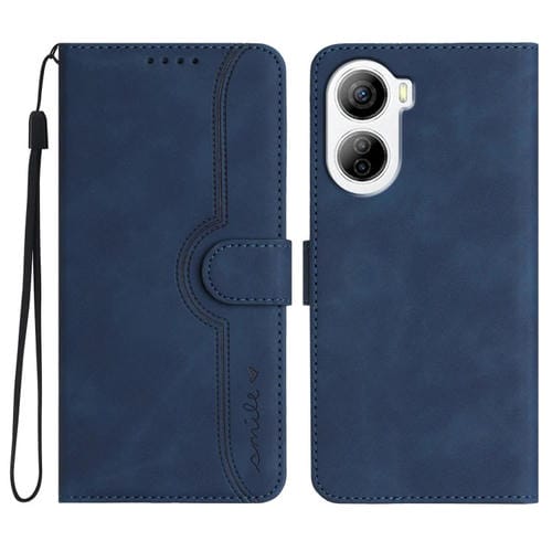Funda de Cuero para ZTE Libero 5G Iv con Sensación de Piel y Patrón de Corazón (Azul Real)