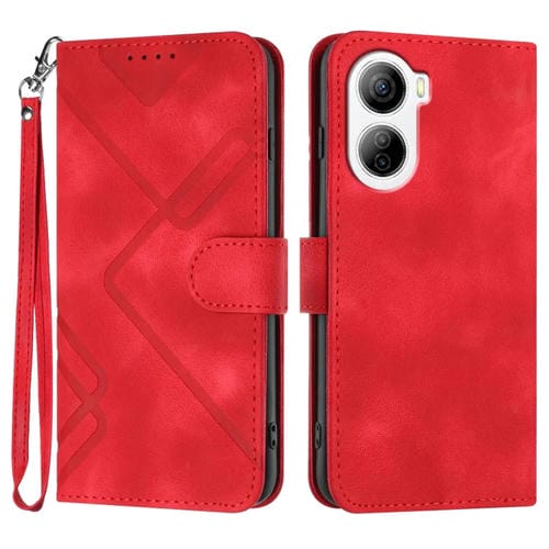 Funda de Cuero para ZTE Libero 5G Iv con Sensación de Piel y Patrón de Línea (Rojo)