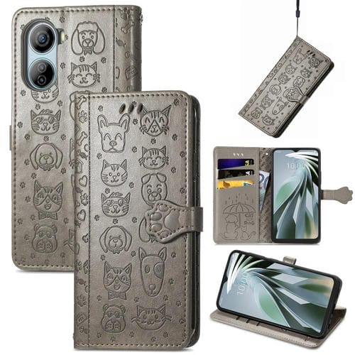 Funda para ZTE Libero 5G Iv de Cuero con Relieve de Perro y Gato (Gris)