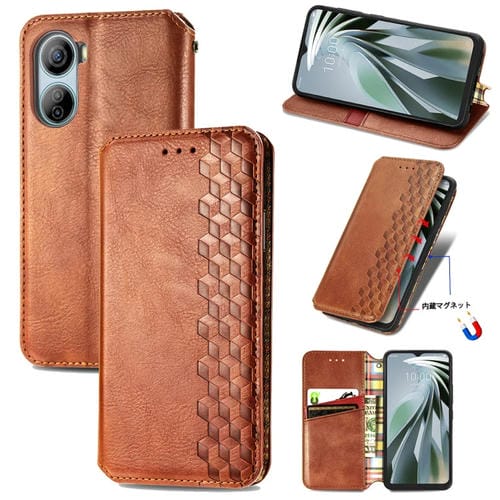 Funda para ZTE Libero 5G Iv de Cuero Magnético Prensado con Rejilla Cúbica (Marrón)