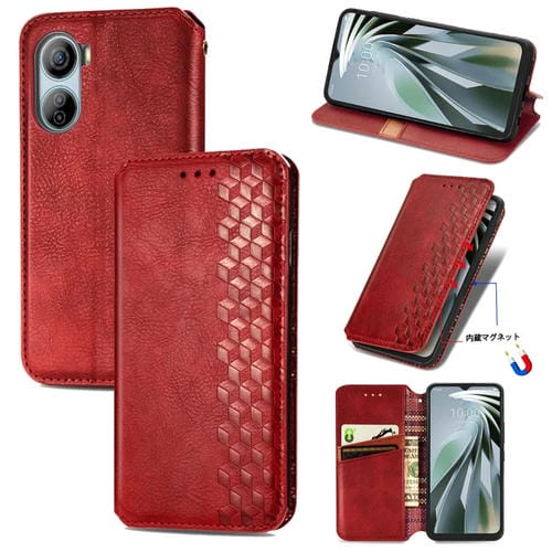 Funda para ZTE Libero 5G Iv de Cuero Magnético Prensado con Rejilla Cúbica (Rojo)
