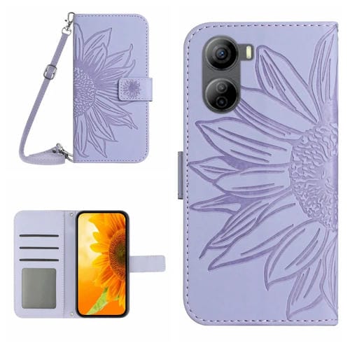 Funda de cuero para ZTE Libero 5G Iv Skin Feel con Cordón y patrón Sun Flower (Púrpura)