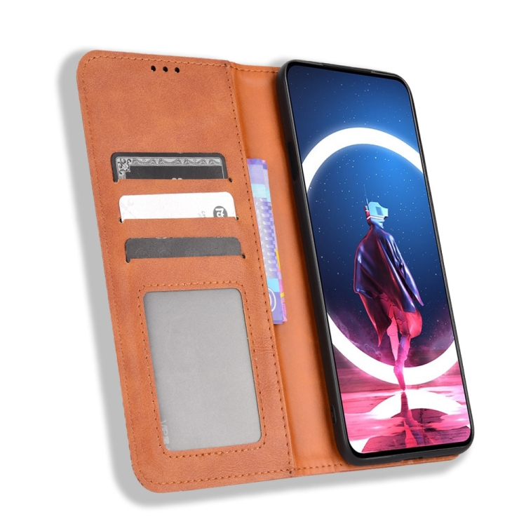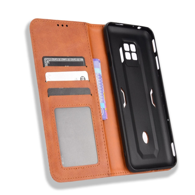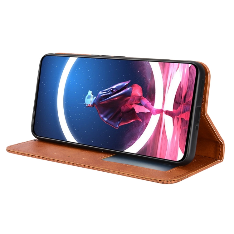 Para ZTE Nubia Red Magic 7 Pro Magnetic Buckle Retro Texture Cuero Case (marrón)