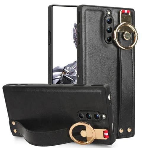 Funda de Cuero + Muñequera para ZTE Nubia Red Magic 8 Pro (Negro)