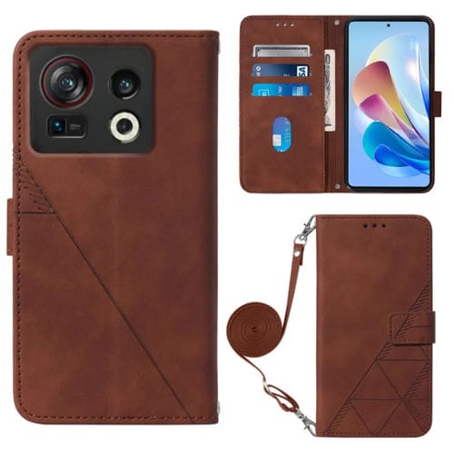 Funda de Cuero con Tapa para ZTE Nubia Z40S Pro Crossbody 3D (Marrón)