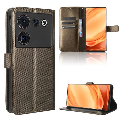 Funda de Cuero para ZTE Nubia Z50 Ultra con Textura Diamond (Marrón)