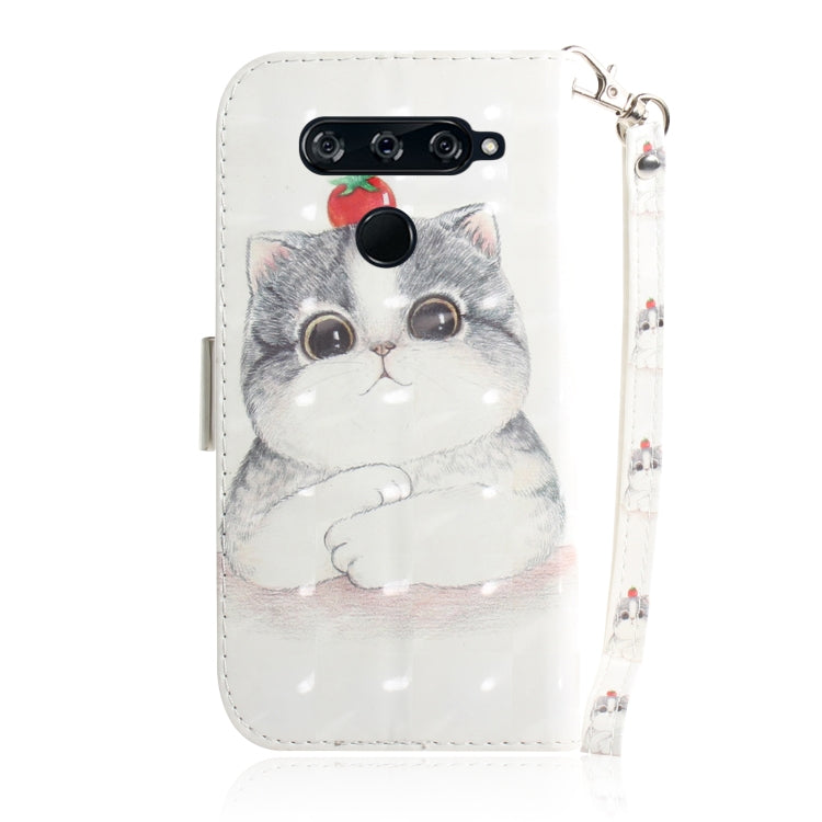 Funda de Cuero con Tapa Horizontal y Soporte LG V40 Thinq (Cute Cat) con Ranuras para Tarjetas y Billetera
