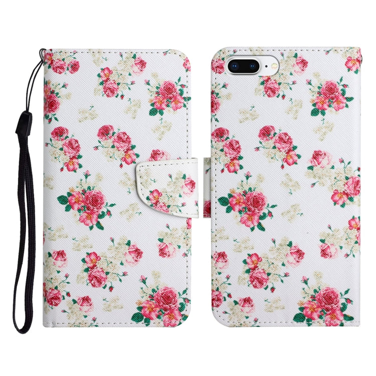 Funda de Cuero Horizontal iPhone 8 Plus y 7 Plus Patrón Pintado Soporte Ranura Tarjeta Billetera (Flor de Peonía Roja)
