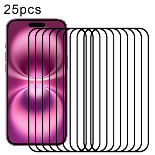 Película de Vidrio Templado con Pegamento Completo para Pantalla iPhone 16 Plus (25 Piezas)