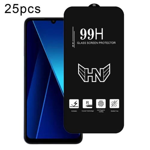 Película de Vidrio Templado de Pantalla Completa de Arco Grande de Aluminio Alto para Xiaomi Poco C65, 25 Piezas