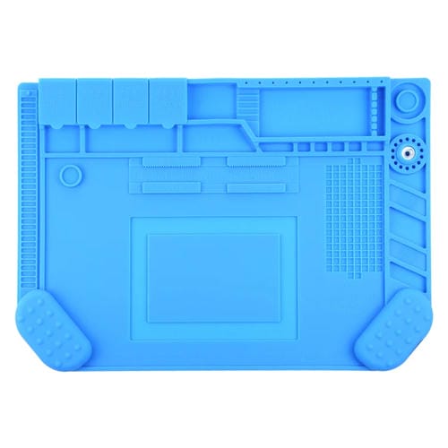 La Alfombrilla de Reparación A-500 Antiestática Magnética es una herramienta esencial para técnicos y usuarios que reparan por cuenta propia dispositivos electrónicos. Con unas dimensiones de 48 x 32 cm, esta alfombrilla está diseñada para ofrecer una superficie de trabajo segura y organizada, compatible con una amplia variedad de componentes electrónicos. Su función principal es proporcionar un área aislante, resistente al calor y antiestática que protege tanto las Piezas delicadas como al usuario de desCargas electrostáticas durante procesos de reparación. Además, incorpora zonas magnéticas y múltiples orificios para la colocación ordenada de tornillos, chips IC y Piezas pequeñas, facilitando la gestión de componentes y mejorando la eficiencia en la reparación.
