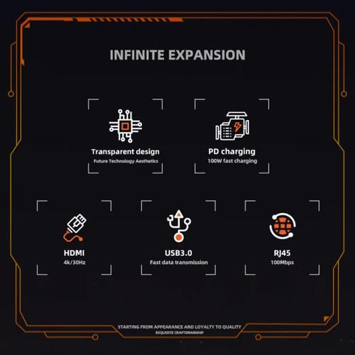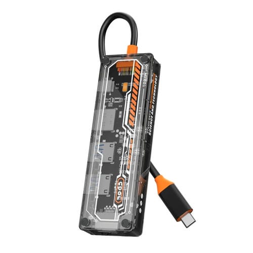 • Interfaz de salida HDMI 4K a 30Hz, RJ45 a 100Mbps, PD3.0 con potencia de hasta 100W y transferencia de datos 2 en 1, USB 3.0 con velocidad de 5 Gbps, USB 2.0 a 480 Mbps; dimensiones 114x36x17,1 mm; peso 71 g; Cable PVC de 145 mm