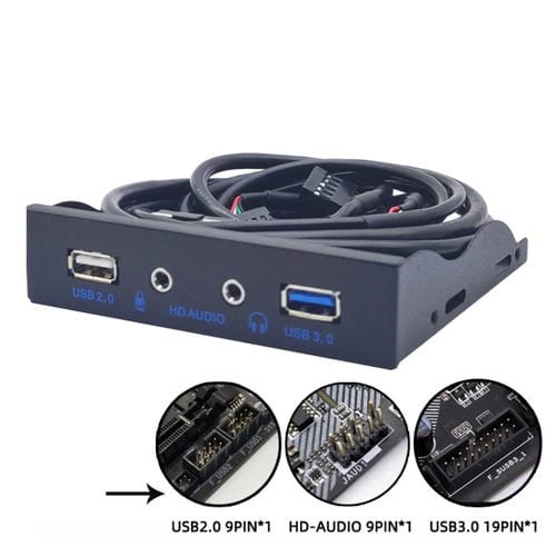 Panel frontal USB 2.0 de 3,5 pulgadas con USB 3.0 y puerto de audio HD para unidad de disquete de caja de PC de escritorio (Negro)