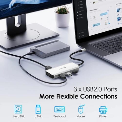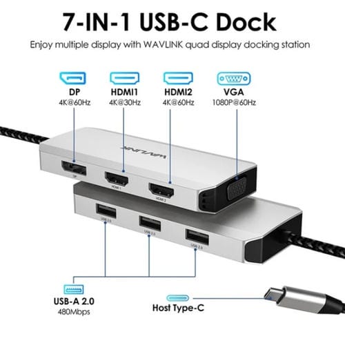• 1x Convertidor USB-C a Dual HD 4K 60Hz Wavlink UMD304 Hub 7 en 1 Estación de Acoplamiento para Computadora Portátil