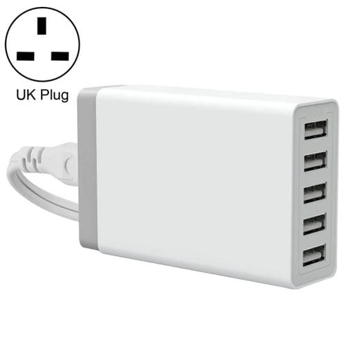 XBX09 Chargeur de voyage rapide 40 W 5 V 8 A 5 ports USB, prise britannique (blanc)
