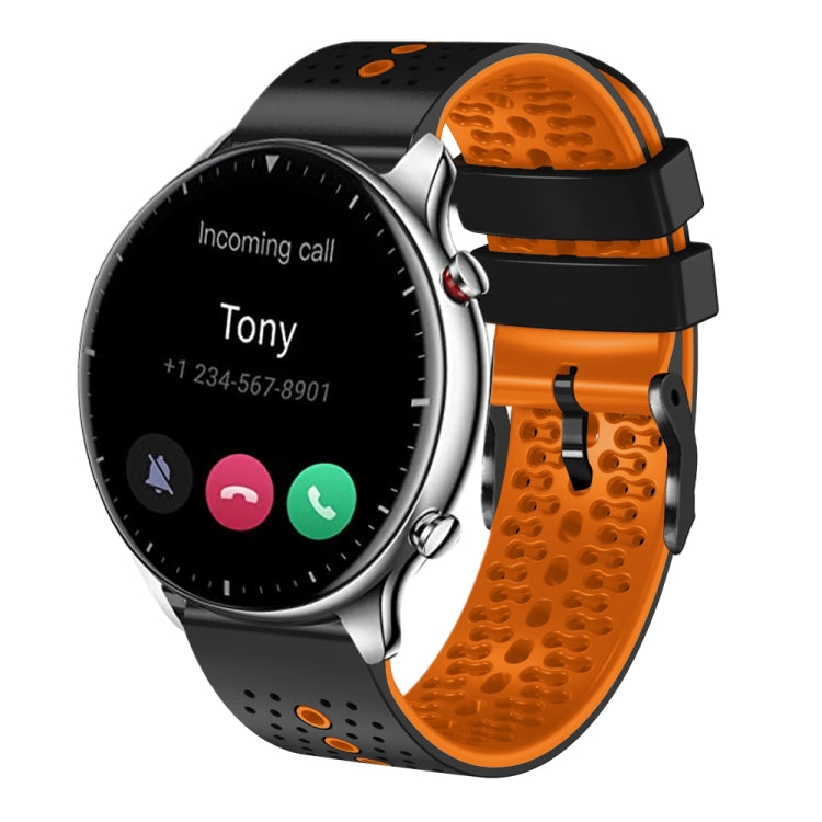Correa de Reloj para Amazfit GTR 2 22mm Silicona Bicolor Perforada (Negro + Naranja)