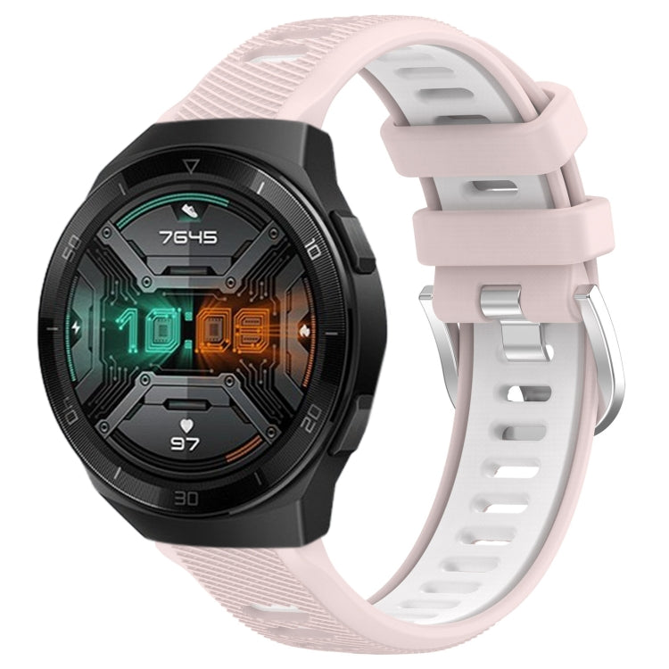 Correa de Silicona para Huawei Watch GT 2E 22mm Deportes con Hebilla de Acero (Rosa + Blanco)