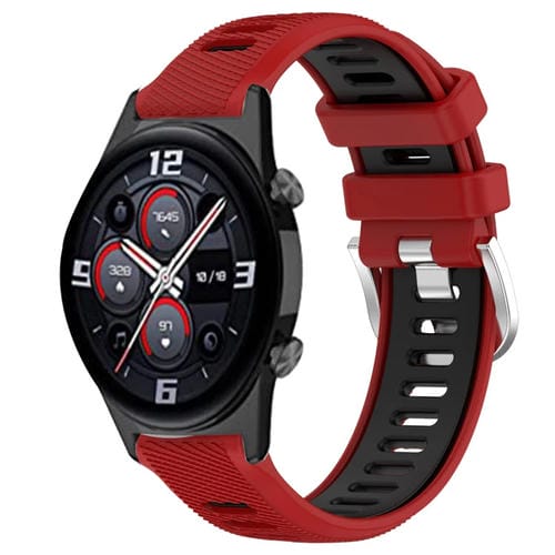 Correa de Silicona para Honor Watch GS 3I 22mm Deportes con Hebilla de Acero (Rojo + Negro)