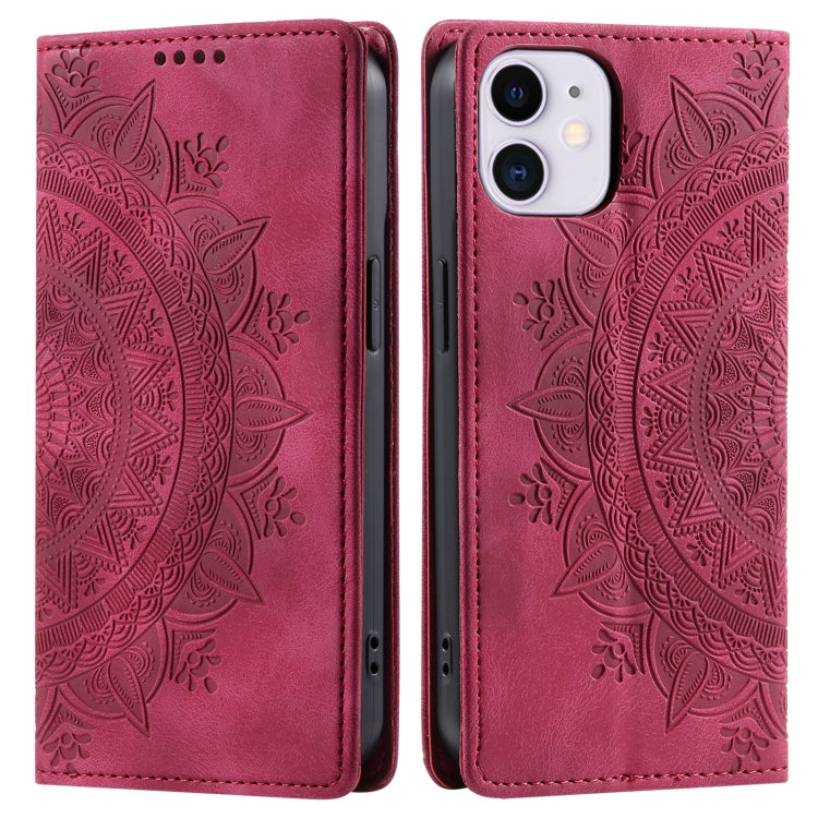 Funda para Teléfono iPhone 11 Cuero Magnético Relieve de Tótem (Rojo)