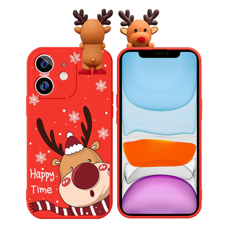 Funda para Teléfono TPU Suave iPhone 11 con Muñeco en Relieve Ciervo y Dibujo Coloreado (Alce)