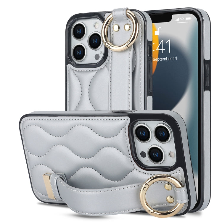 Funda para iPhone 13 Pro Antideslizante de PU con Anillo y Muñequera (Plata)