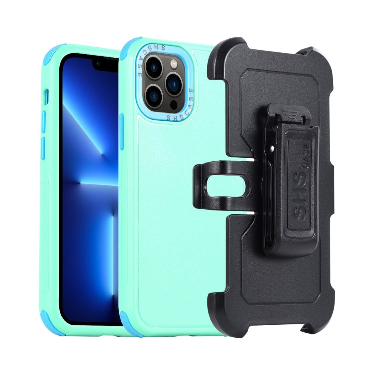 Funda para Teléfono iPhone 13 Pro 3 en 1 PC + TPU con Funda Deslizante (Verde Hierba + Azul Cielo)