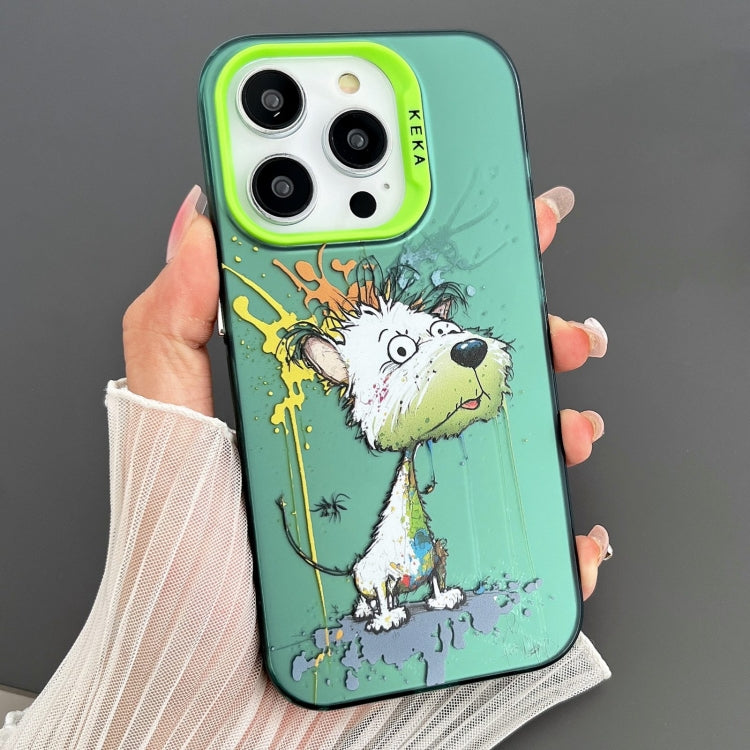 Funda para Teléfono iPhone 13 Pro Imd Animal Graffiti TPU + PC Doble Cara (Perro Verde Blanco)