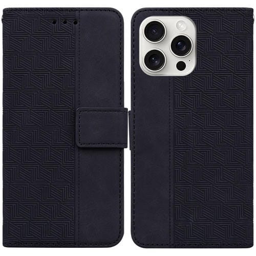 Funda para iPhone 16 Pro Max de Cuero con Relieve Geométrico (Negro)