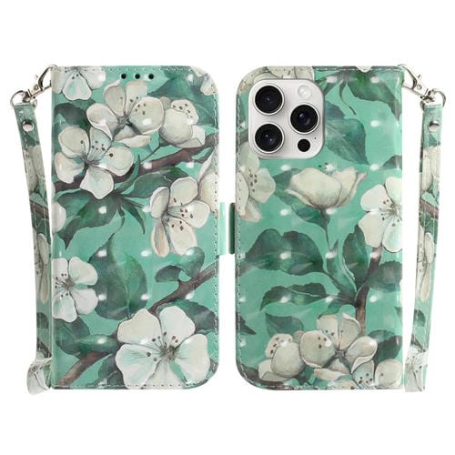 Funda para Teléfono Apple iPhone 16 Pro Max y 16 Pro Cuero Tapa Horizontal Color 3D (Flor de Acuarela)