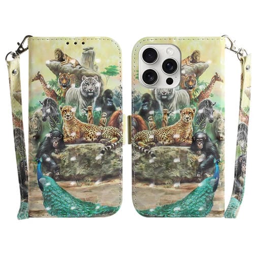 Funda de Cuero con Tapa Horizontal y Diseño 3D para iPhone 16 Pro Max/16 Pro (Zoológico)
