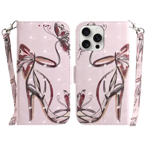 Funda para teléfono iPhone 16 Pro Max y 16 Pro cuero con tapa horizontal 3D (Mariposa de Tacón Alto)